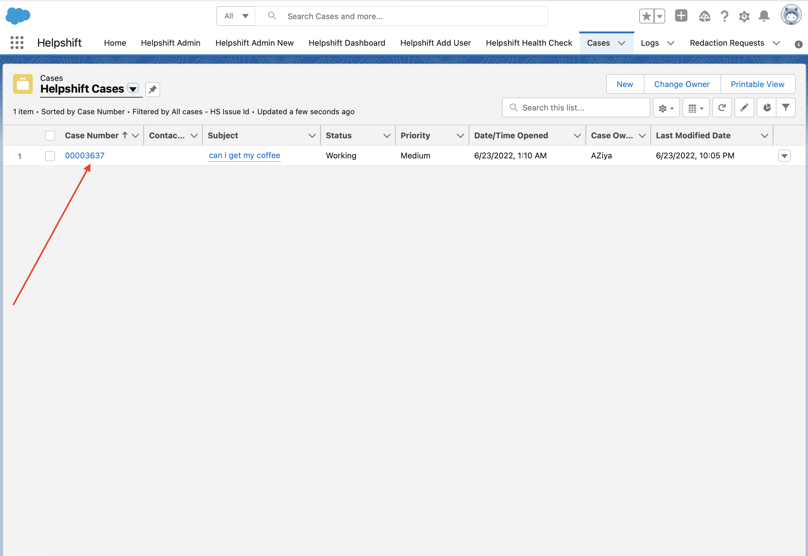 - Navigate to any Helpshift case record from the list view